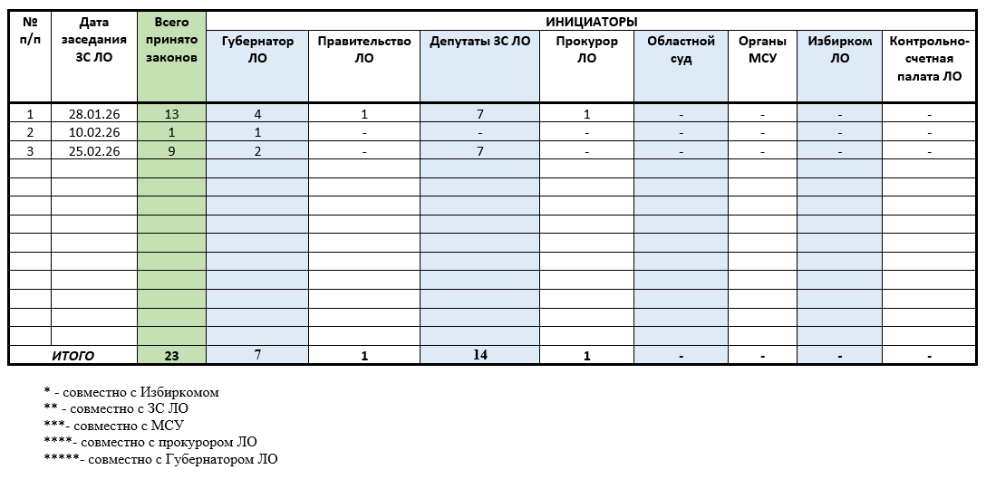 Статистика по инициаторам законопроектов