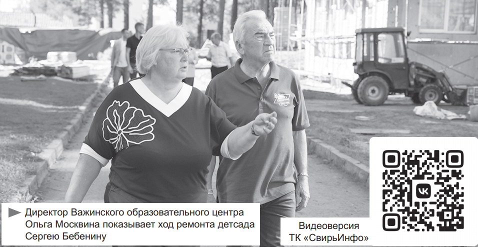 Председатель областного Заксобрания Сергей Бебенин вмести с руководителями Подпорожского района посетил посёлок Важины. Здесь он осмотрел ход ремонтных работ в детском саду и новую точку притяжения туристов.