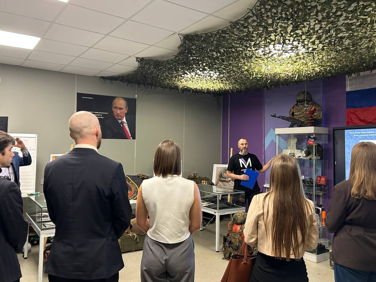 Затем гости отправились на экскурсию в музейное пространство, посвящённое специальной военной операции. Историей расположенных здесь экспонатов с ними поделился участник спецоперации, благодаря правдивым рассказам которого музей воспринимался не просто как экспозиция, а как живое напоминание о людях, которые сегодня борются за мир и безопасность нашей страны.