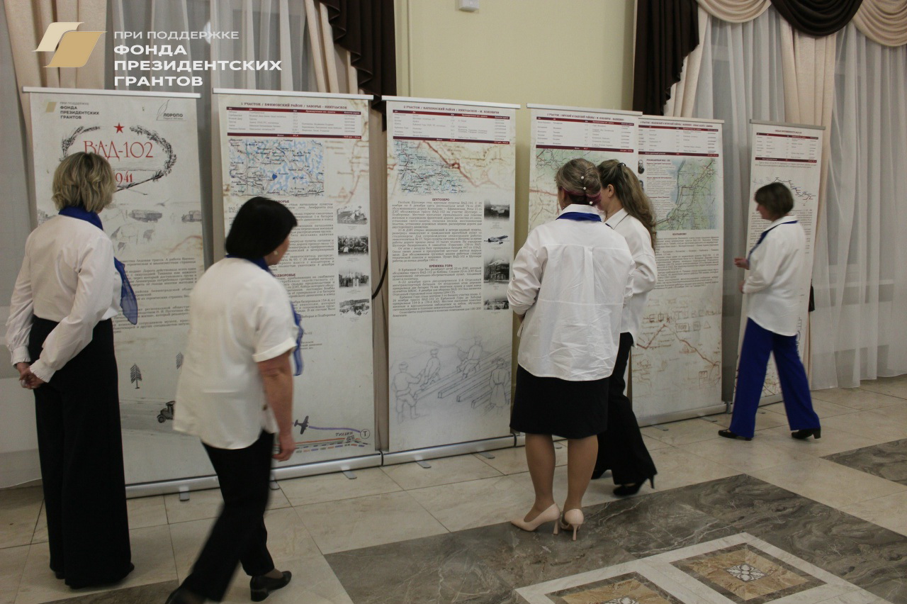 Перед началом мероприятия участники торжества знакомились с интересными выставками по истории Пикалево. Важным дополнением экспозиции передвижная выставка по истории ВАД -102, которая создана в рамках проекта «Военно-автомобильная дорога (ВАД) 102. Начало Дороги Жизни.» Этот проект общественной организации «Педагог XXI века», которым руководит Н.И.Пустотин получил в 2024 году поддержку Фонда Президентского гранта. Результатом большой работы коллектива сотрудников музеев, учреждений культуры Ленинградской области, ЛГУ им А.С.Пушкина, стала серия информационных, публицистических и выставочных материалов, визуализирующих и тиражирующих информацию о героических, военных страницах истории Ленинградской области и её восточной части. Пикалево как город в период войны не существовало. Это были пара десятков деревень, жители которых были участниками страшных событий первой военной осени-зимы 1941 года.