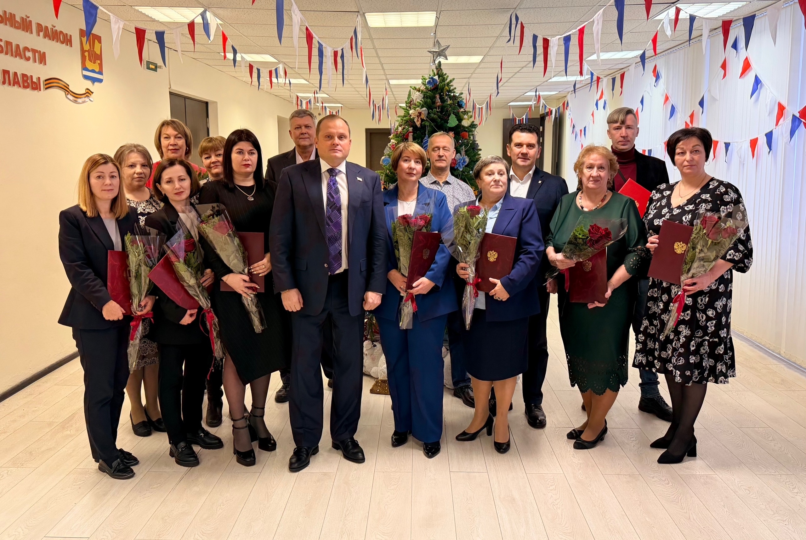 Помощник сенатора РФ Дмитрия Василенко - депутат Законодательного собрания Ленинградской области Михаил Коломыцев от себя и своего коллеги Андрея Гардашникова поздравил отличившихся работников Кировского района, вручил им Благодарности и Почетные дипломы Законодательного собрания Ленинградской области .
