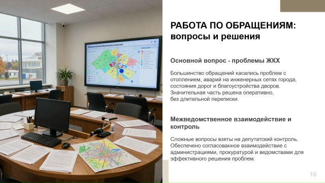 Параллельно депутат занималась решением текущих проблем жителей: отопление, протечки, инженерные сети, состояние дорог, дворов и благоустройство. Где-то вопросы удавалось решать быстро, а где-то требовалась долгая работа с разными ведомствами и дополнительный контроль.