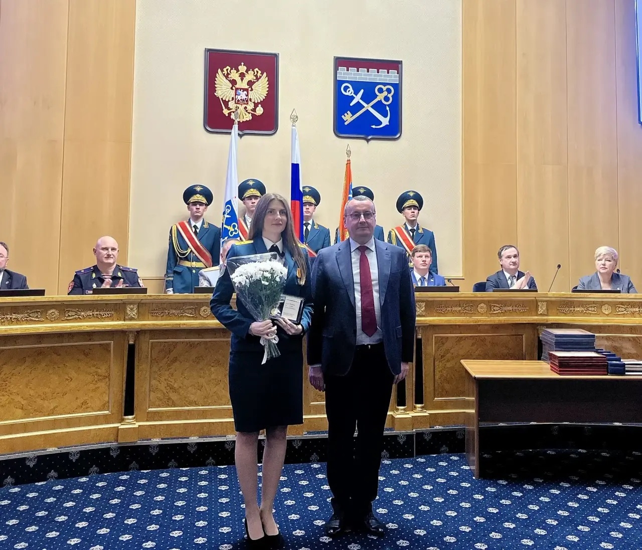 В преддверии Дня спасателя Павел Вячеславович Коржавых как представитель регионального парламента зачитал приветственный адрес от Председателя Законодательного собрания Ленинградской области Сергея Михайловича Бебенина и вручил награды ЗакС 47 региона.
