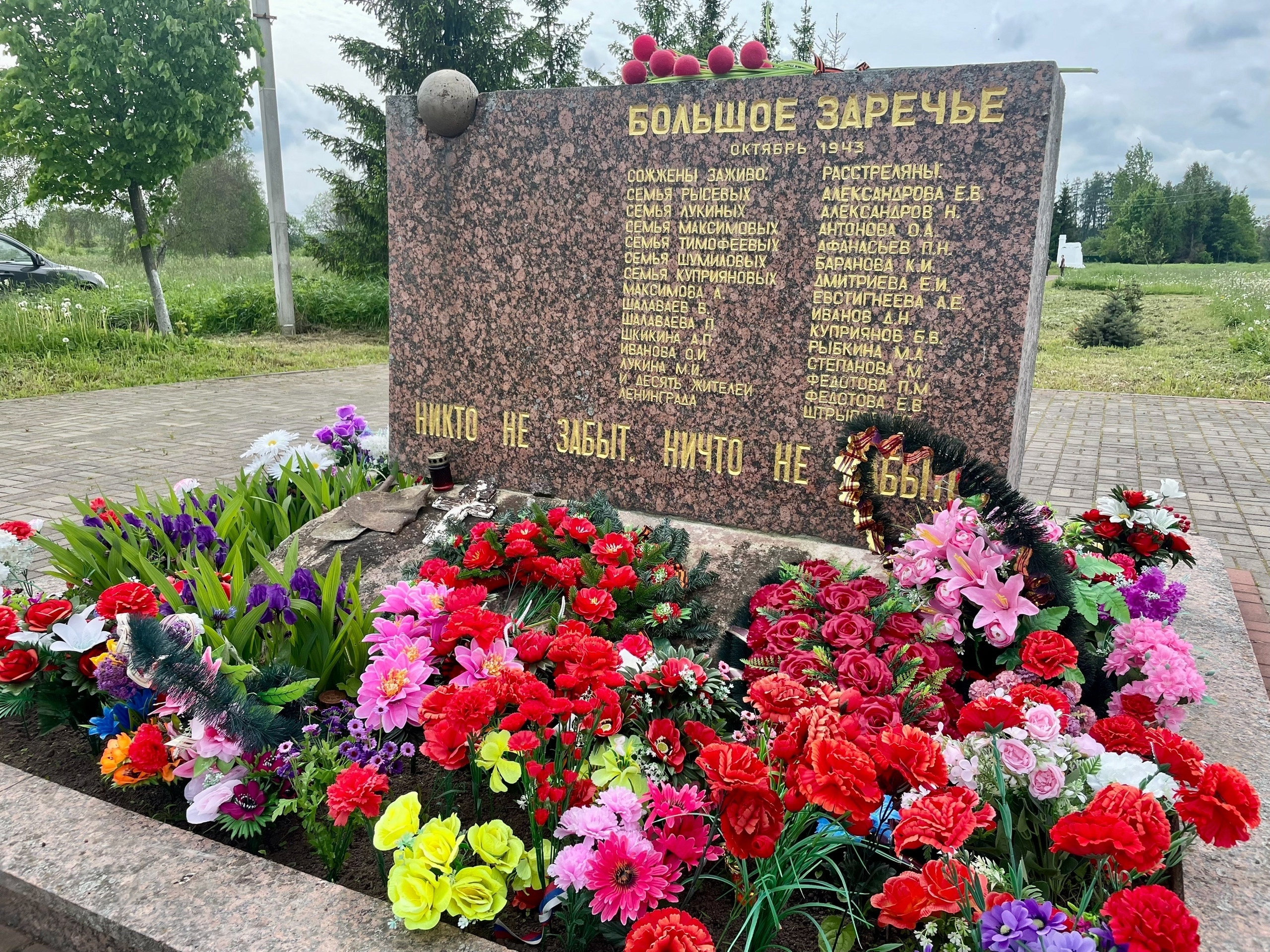 Торжественное открытие фестиваля прошло на мемориале «Большое Заречье» — скорбном месте, где когда-то располагалась деревня, уничтоженная фашистами в октябре 1943 года. За связь с партизанами и отказ ехать на работы в Германию враги сожгли деревню вместе с жителями. Сегодня лишь уцелевшие кирпичные печи напоминают о мирной жизни, которая здесь когда-то была.