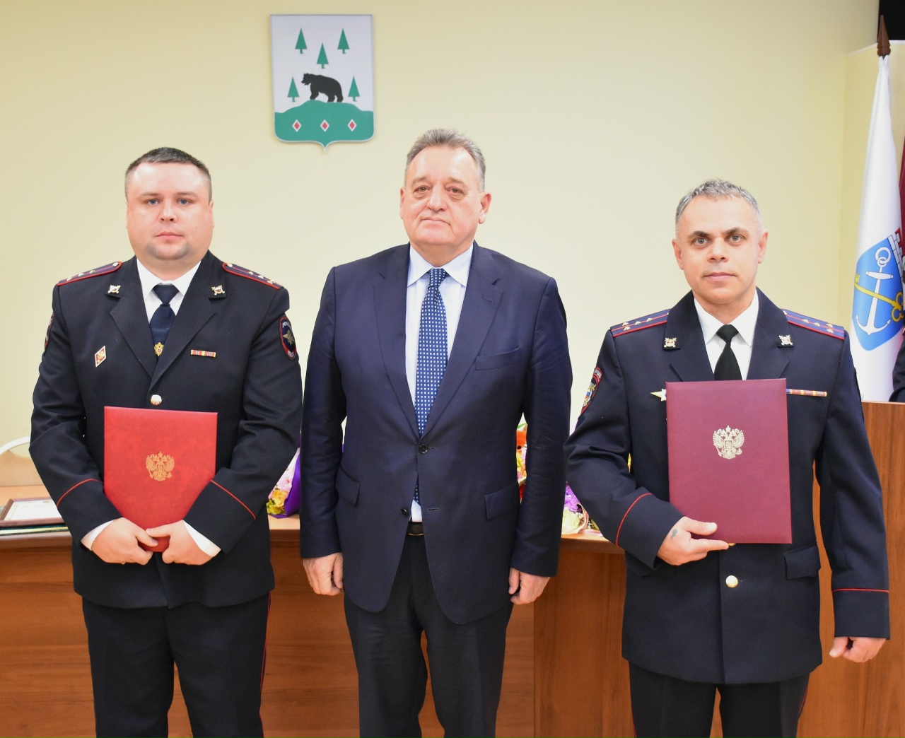 На церемонии награждения присутствовали и поздравили полицейских: депутат Законодательного собрания Ленинградской области Николай Пустотин, глава Бокситогорского района Валерий Тихонов, глава Бокситогорского городского поселения Ирина Титова и глава администрации Пикалевского городского поселения Дмитрий Садовников.
