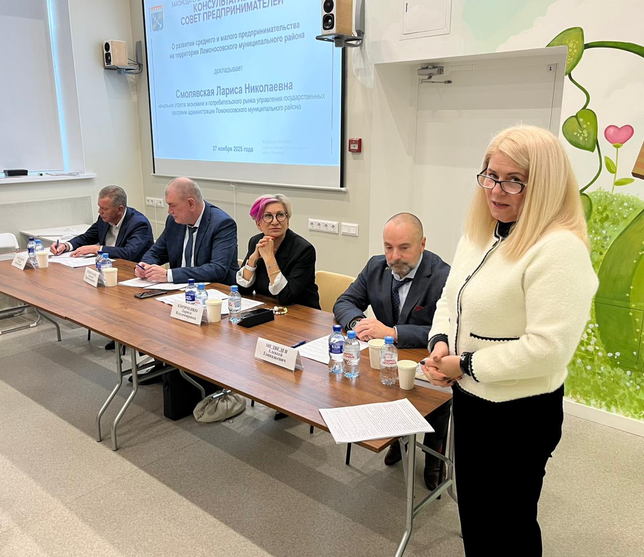 Начальник отдела экономики и потребительского рынка управления государственных программ администрации Ломоносовского района Лариса Смолявская подробно рассказала о том, какие меры поддержки для развития МСП оказываются в районе. Она подчеркнула, что с каждым годом растет вклад малого и среднего бизнеса в экономику района, т.к. растет количество предпринимателей, объем производимых ими товаров и предоставляемых услуг, и, соответственно, увеличиваются налоговые поступления в бюджеты разных уровней. В районе на сегодняшний день осуществляют деятельность 6040 хозяйствующих субъектов, в том числе 4255 индивидуальных предпринимателя, а также 13 тысяч самозанятых. В 2024 году в рамках муниципальной программы «Развитие малого и среднего предпринимательства в Ломоносовском муниципальном районе» на эти цели было направлено 1 980,9 тыс. рублей. На территории района зарегистрировано 62 нестационарных торговых объекта и 22 ярмарочные площадки с организацией более 480 торговых мест. С 2026 года будет оказываться финансовая поддержка для социальных предпринимателей.