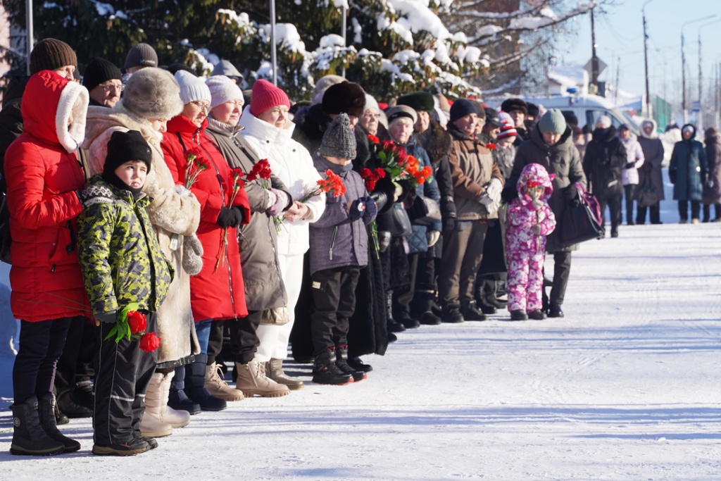 В этот солнечный морозный день в Сквере Памяти было особенно многолюдно. Здесь, у стен военкомата, собрались ветераны боевых действий, матери и вдовы погибших солдат, представители власти, юнармейцы и неравнодушные жители города.
