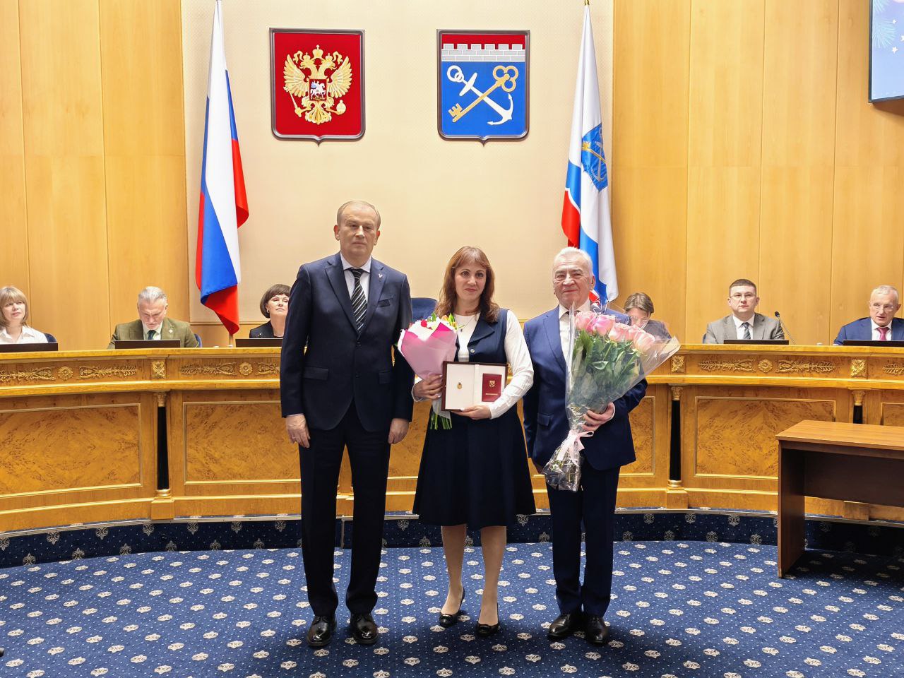 В числе награжденных сегодня была и сотрудница аппарата Законодательного собрания Ленинградской области. За многолетнюю эффективную работу в государственных органах и высокий профессионализм почетным знаком Губернатора «За безупречную службу Ленинградской области» XXV лет была награждена консультант отдела организации работы постоянных комиссий Виктория Абдуллаева.