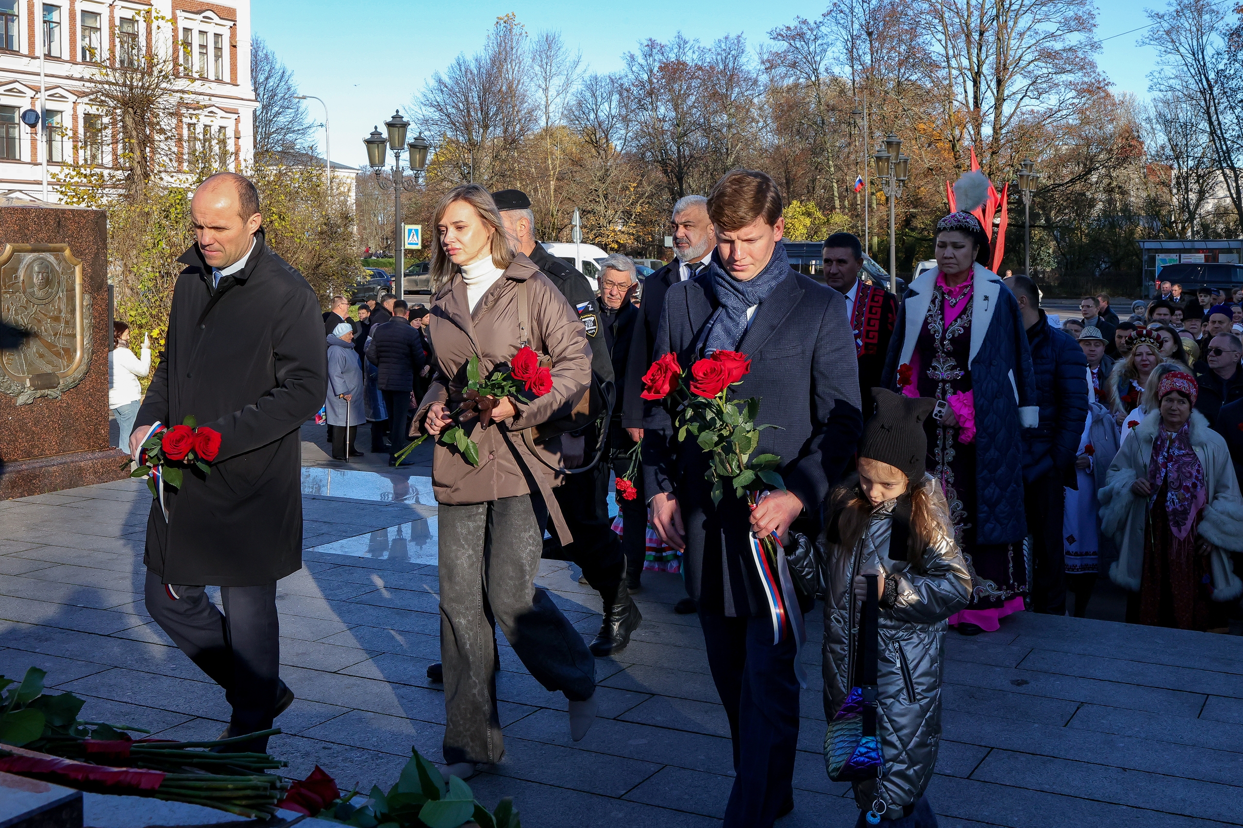 В Год защитника Отечества и 80-летия Великой Победы торжественные мероприятия, посвященные государственному празднику, начались с церемонии возложения цветов к стеле «Город воинской славы» на площади Выборгских Полков.